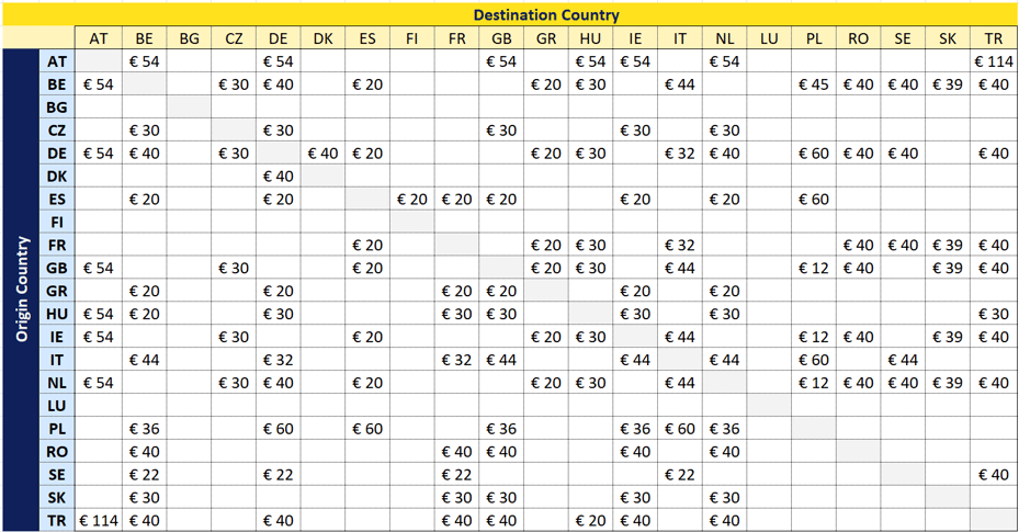 | EUR price (monthly average) | Intra EU | Non EU | |||||||